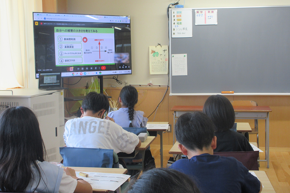 - インターネットはべんりなものだけど、たくさんのトラブルが起きてしまうことがあるから、上手に使うことが大変なものだと思いました。これからインターネットやSNSを使うときのルールを家で確認して、安心・安全に利用できるように心がけていきたいと思いました。