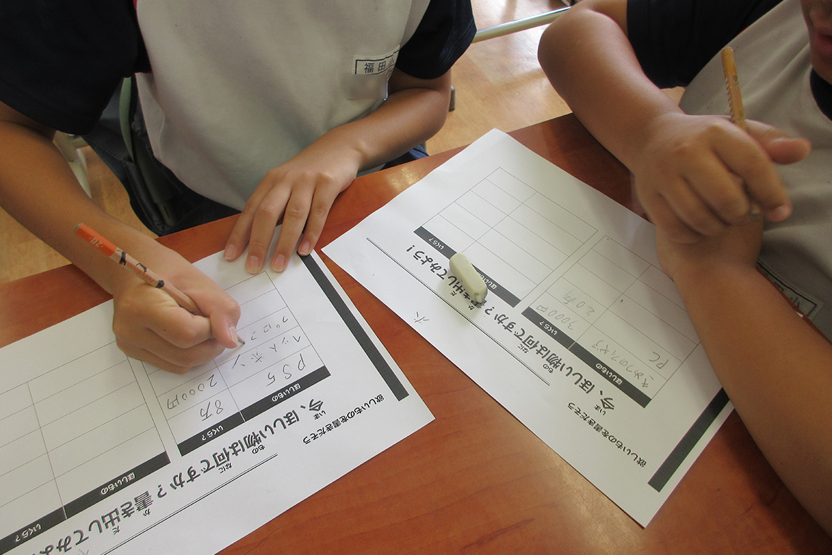 2000年以上も昔、自給自足をしていた時代は物々交換により必要な物を手に入れていたこと、中国では貝殻をお金として使っていたことなど、お金の成り立ちについてクイズを交えて学習した。おこづかい体験では、自分が欲しい物とその値段を書き出し、どのようにして目標の金額を貯めるかワークを行い、お金は使うことも貯めることもどちらも大事であり、よく考える必要があることを理解した。最後に、段ボールを使った貯金箱づくりを体験し、計画的にお金を貯めることの大切さを楽しみながら学んだ。