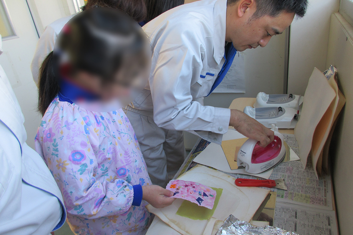 - 家に帰ってから、紙漉き体験のことを教えてくれました。社員の方とのふれあいが楽しかったようで、身振り手振りで教えてくれました。