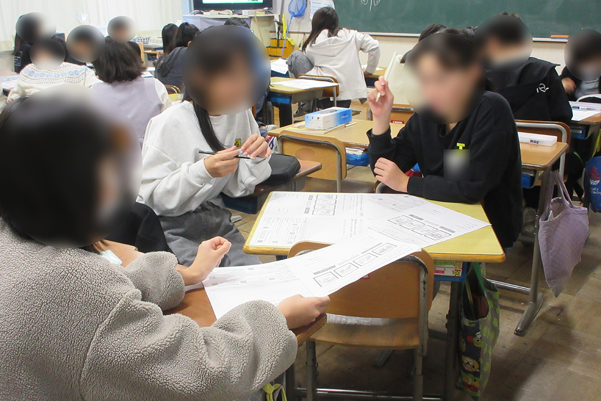 スマホやネットを上手に活用するためにはリスクを知ることが大切であり、「リスク(危険性)=起こりやすさ×被害の大きさ」であることを理解した。その後、自分に起こりそうなリスク(長時間利用、高額課金、チャットでの喧嘩、歩きスマホ)は何か、被害の大きさはどの程度かを考えた。また、スマホやネットの使い過ぎにはどのようなリスクがあり、ネットやSNSをやめたいときはどのような工夫をすると良いかを学んだ。最後にチャットは自分の感情が相手に伝わりにくく誤解が生じたり、些細なことで相手を傷つけたりしてしまうリスクがあること、個人情報は慎重に扱わなければいけないこと、チャットでの返信に困ったときの工夫の仕方などを学んだ。