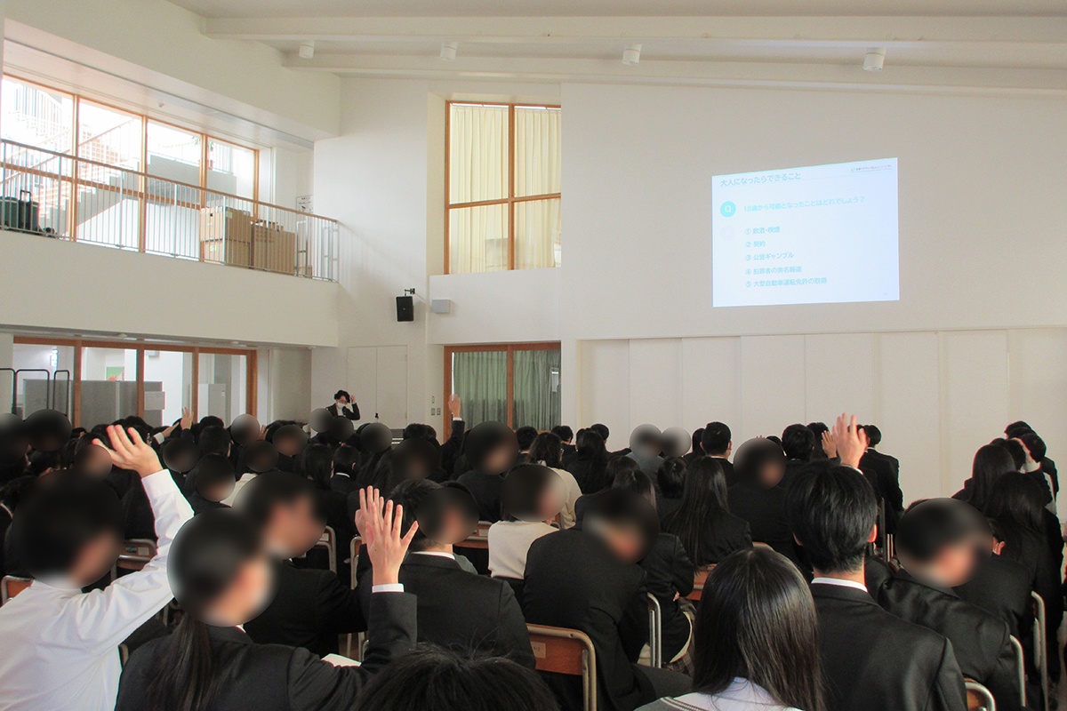 人生の三大資金である「住宅資金」「教育資金」「老後資金」について、どの程度の費用がかかるのかをクイズを交えながら学び、夢や目標を実現するためにはお金が必要であることを理解した。就職や結婚、子どもの教育・養育、定年退職後などのライフイベントと収支曲線を見比べながら、収支ギャップ(予定外の収入減少や支出増加)が生じた場合には、資産の取崩しや消費の制御、借入などの対応が必要となることを学んだ。そのため、必要な資金を確保するための貯蓄のポイントとして、先取り貯蓄などの家計管理の方法について学習した。また、18歳から一人で有効な契約をすることができるようになるため、ヤミ金融や高収入アルバイトなど、さまざまな金融トラブルの事例を通して、だまされないためのポイントについて学習した。今後利用していくローンやクレジットの仕組みや利用方法、信用情報についても学び、金融トラブルに巻き込まれないためには、金融リテラシーを身に付けることが重要であると理解した。