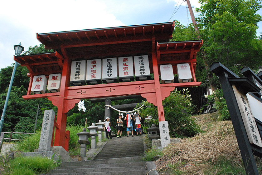 その後、蔵王温泉街へ移動して取材と写真撮影を行いました。取材と写真撮影では、蔵王温泉街のお店を訪問しながら「酢川温泉神社」を目指し、数台のiPadを使ってみんなで撮影します。