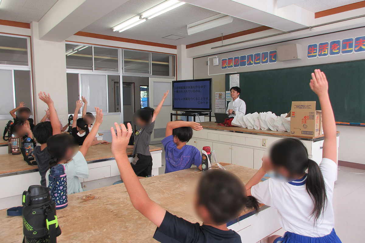 おせんべいの種類や原料、歴史などについて、チーム対抗○×クイズを行ったほか、人気商品「岩塚の黒豆せんべい」が出来上がるまでの工程や、工場での衛生管理について講話や動画を通して学習した。試食体験では、工場から直送された味付け前の「味しらべ」を試食し、おせんべい本来の風味を味わったあと、定番の砂糖醤油味のほか焼きもろこし味、ピザ味の中から好みのフレーバーを選びオリジナルの味付けを楽しんだ。また「田舎のおかき」「大袖振豆もち」「きなこ餅」「バター餅」の計4種類の商品の食べ比べを楽しんだ。