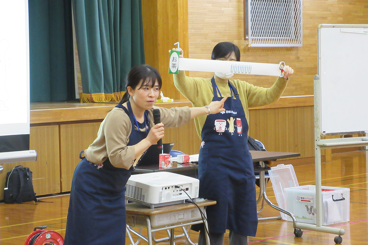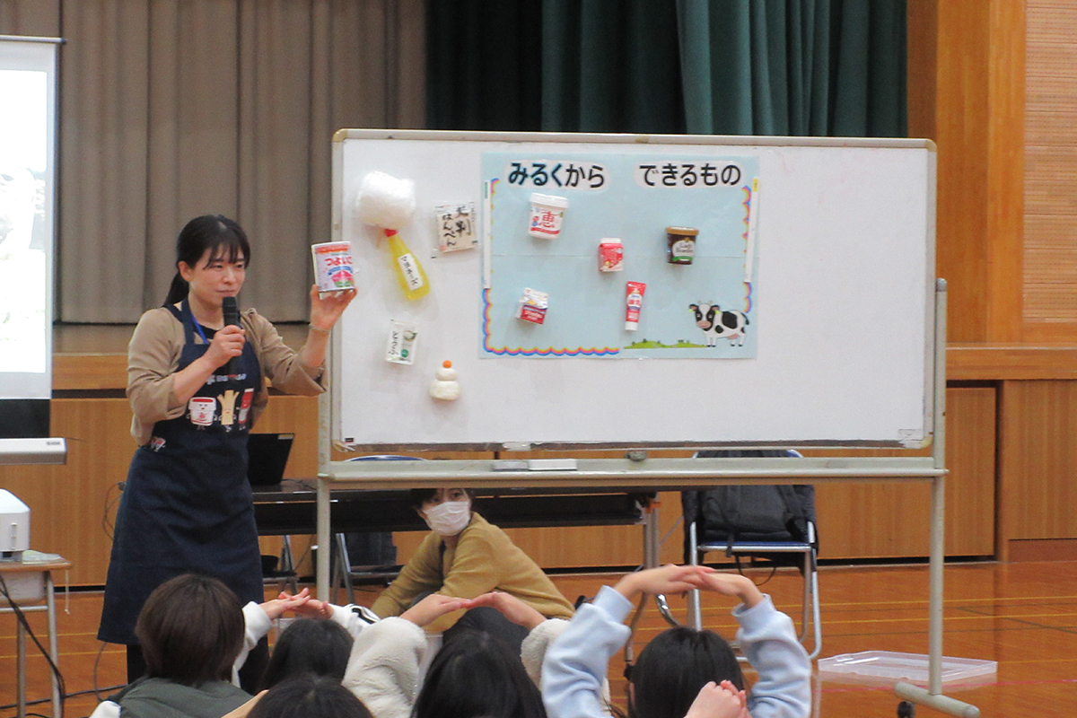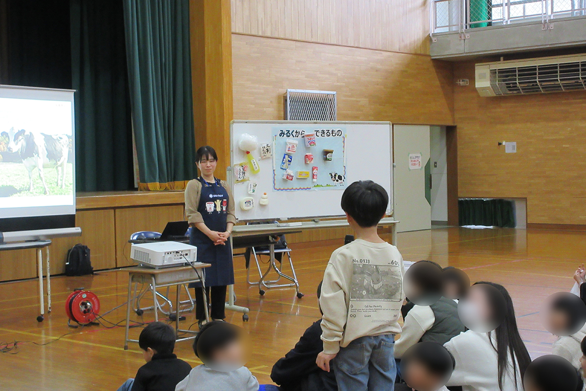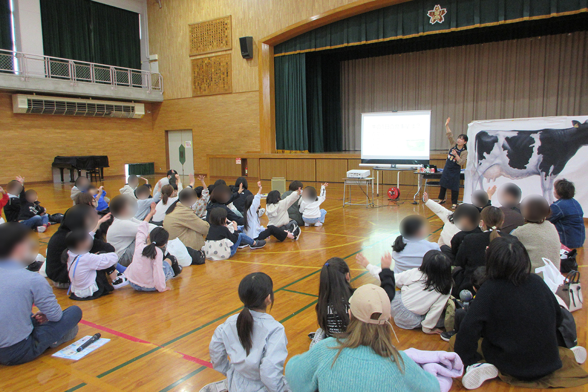 - クイズがおもしろかったです。牛にゅうがはいっているたべものクイズがたのしかったです。マーガリンに牛にゅうがはいっていないことがわかって、びっくりしました。